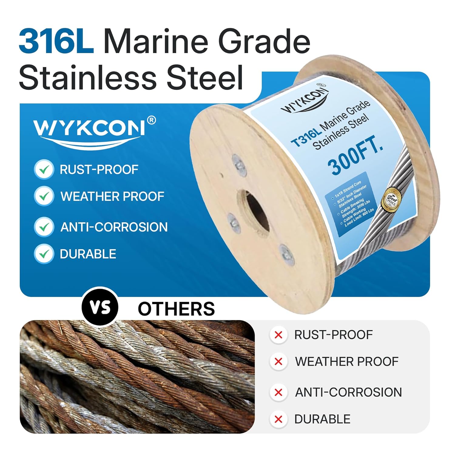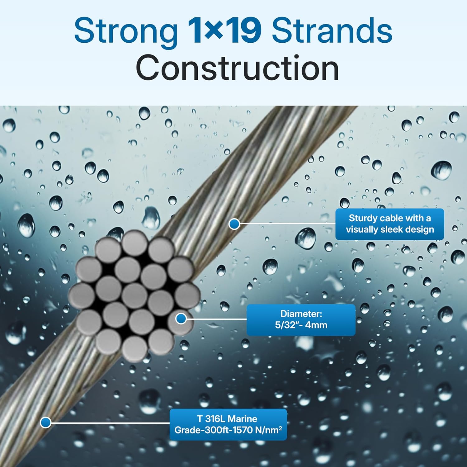 • Holding up to Wet Weather: Crafted from durable 316L stainless steel, our 5/32 stainless steel cable resists wear and corrosion, ensuring exceptional durability and longevity even in harsh environments.