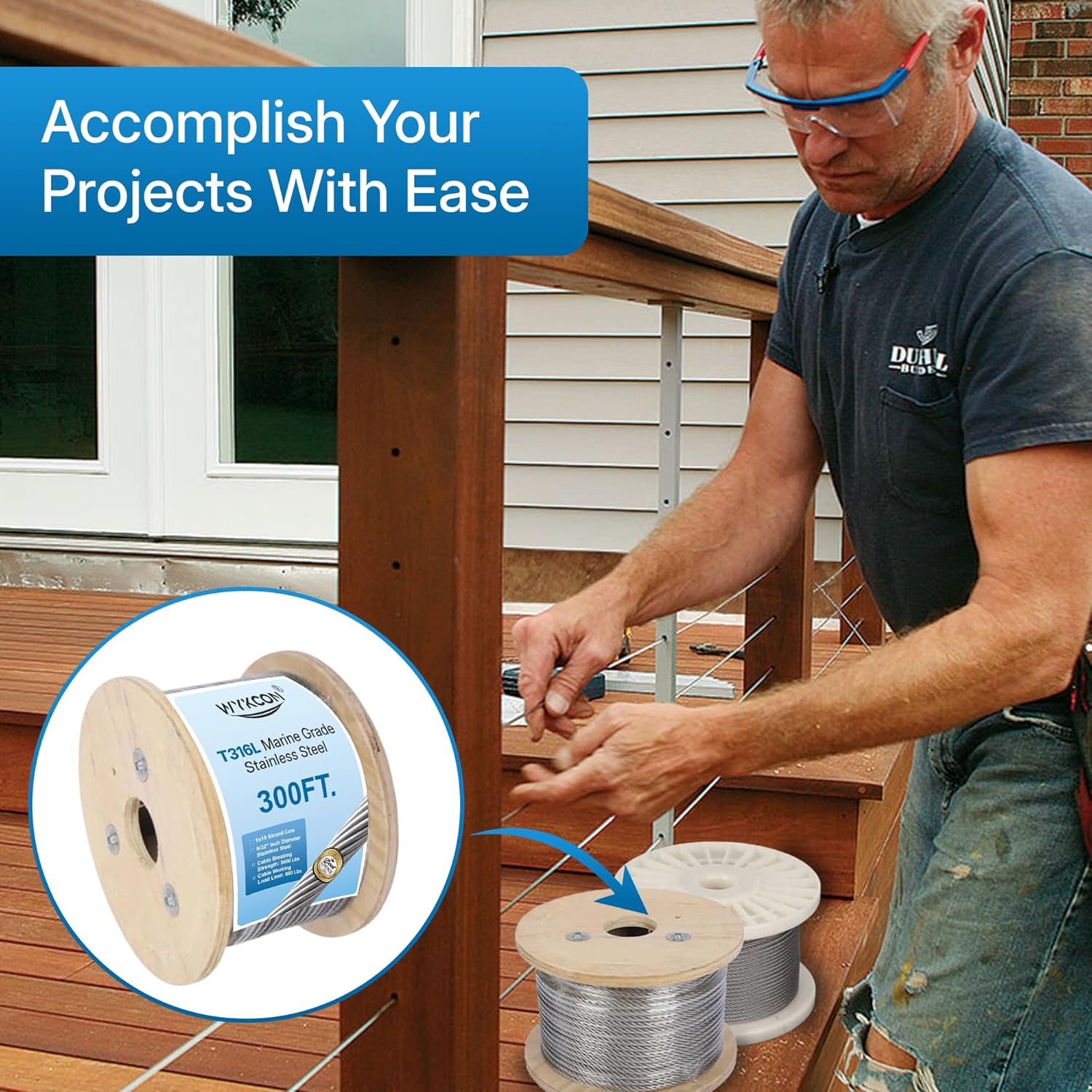 • Built for Maximum Strength: Whether you’re hanging items or installing railings, Wykcon’s stainless steel wire rope provides the confidence you need. Its 1 x 19 strand core ensures a working load limit of 660 lbs and a breaking limit of 3300 lbs, guaranteeing enduring performance.